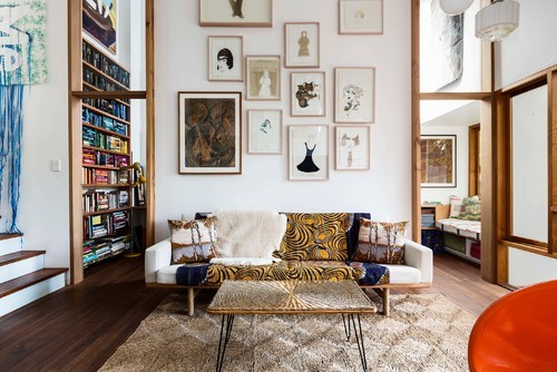 Grouping artwork close together has a bigger impact than one lonely little frame, especially on a large wall. Mix and match sizes, colours and styles, hanging everything from cheap and cheerful illustrations to treasured postcards for an eclectic look.