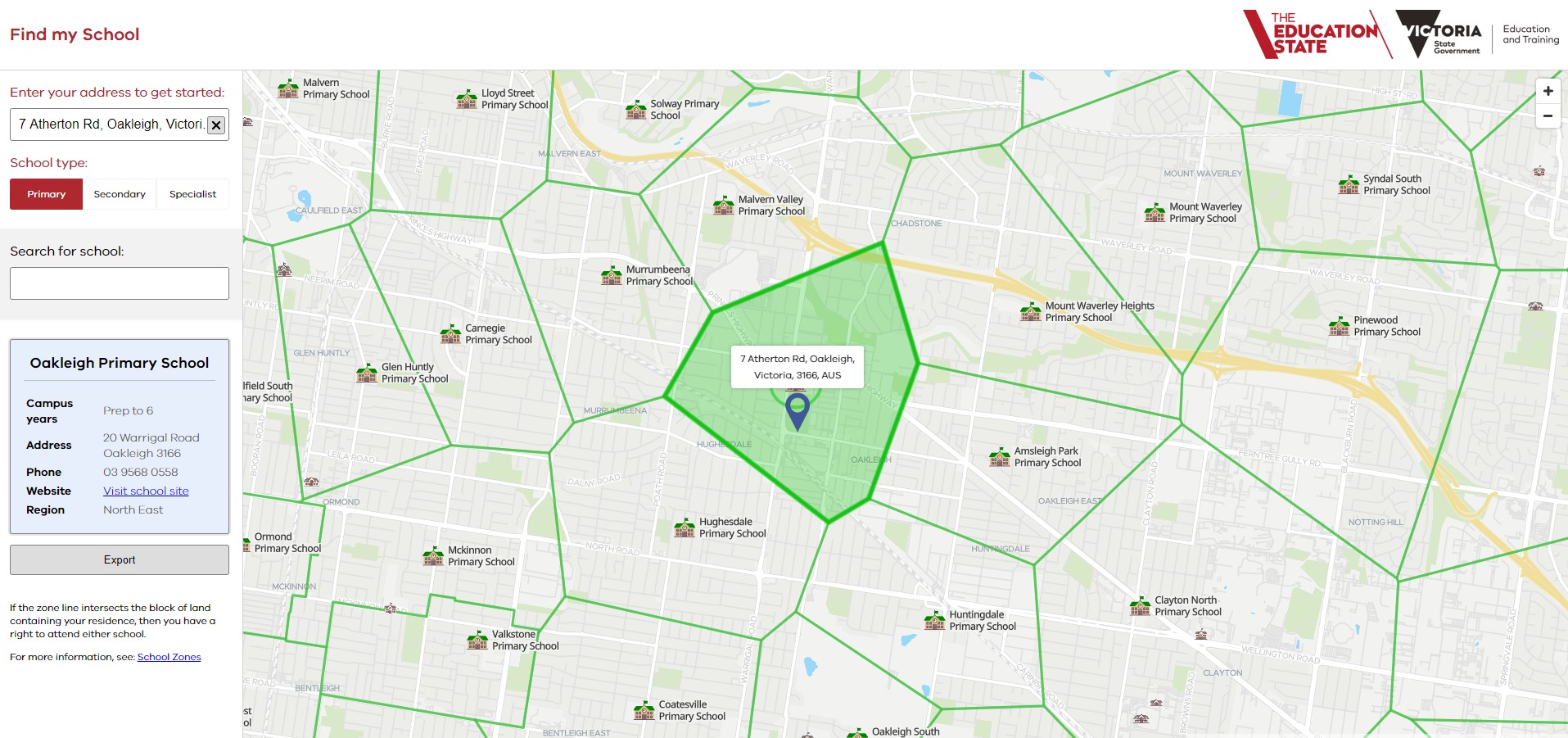Until recently, you had to rely on Google to find out the public primary and secondary schools zoned for a property address, and that often meant using websites with a disclaimer. The Victorian state government’s Department of Education and Training has launched the Find My School website in early 2019. Findmyschool.vic.gov.au provides all parents and students with clear information about school zones in Victoria and is the official source for all Victorian public school zones. Visit https://www.findmyschool.vic.gov.au/ and type in your property address; the website will then locate your designated neighbourhood public primary and secondary schools.