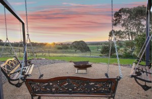 Now we’re getting into the swing of things, check out this quirky outdoor fire pit setup. Enjoy gorgeous views of the countryside as you relax and warm up fireside on these swinging benches – fun!